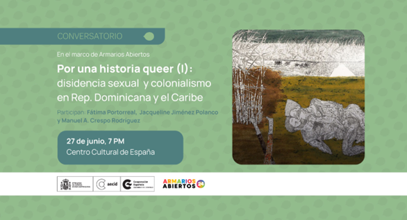 El Centro Cultural de España en Santo Domingo (CCESD) celebra el 27 de junio, a las 19:00h (hora local), la charla Por una historia Queer: Disidencia sexual y colonialismo en República Dominicana y el Caribe. Se trata de la primera charla del ciclo Por una historia Queer, con el que se quiere visibilizar la historia de la disidencia y resistencia sexual a lo largo de los siglos, integrado en la iniciativa de la Red de Centros Culturales de la Cooperación Española Armarios Abiertos.